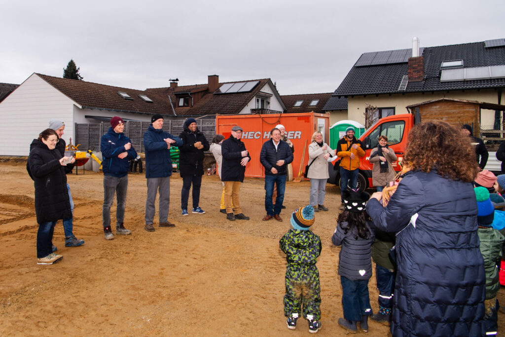 Beim Spatenstich waren auch die Kindergartenkinder dabei. Sie freuen sich schon auf den Neubau.